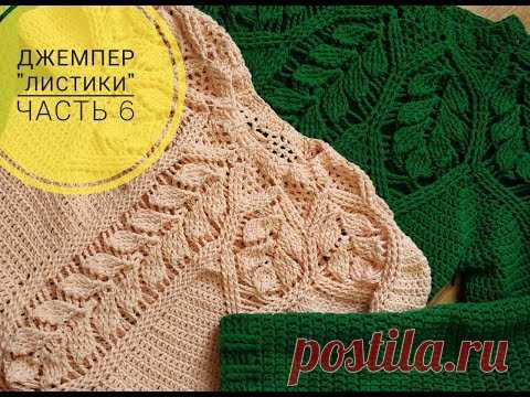 Джемпер с листиками кокетка часть 6