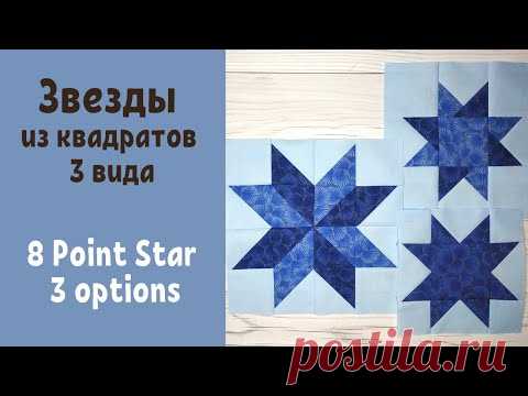 Восьмиконечная звезда из квадратов 3 вида Пэчворк / 8 Point Star Quilt Block from squares 3 options | Пэчворк