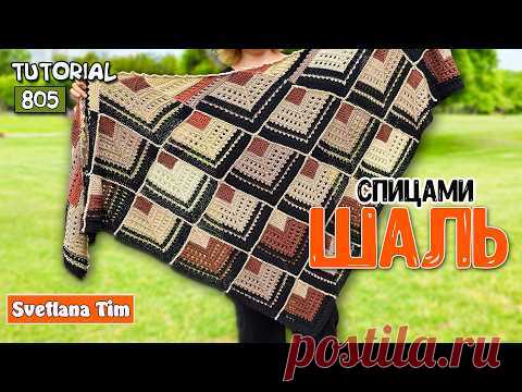 Шаль Пэчворк "Цветной Квадрат" – Учимся Вязать Эффектную Шаль Спицами!