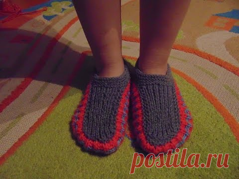 Вязание спицами тапочки с Английской резинкой.часть 1