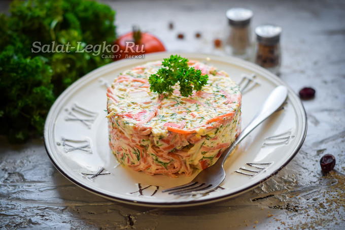 Салат "Валерия" с крабовыми палочками и корейской морковкой