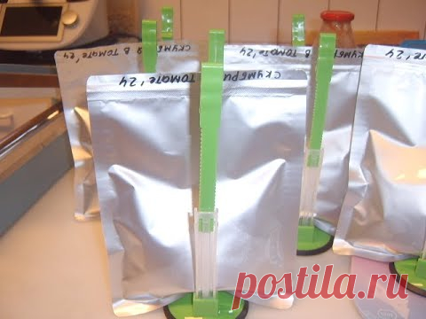 В изображении представлены серебристые пакеты с застёжками, которые удерживаются зелеными клипсами. На каждом пакете есть надпись.