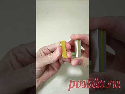 На изображении две руки держат цветные кусочки глины или полимерных полосок. Они расположены вертикально и имеют четкие линии разных цветов.