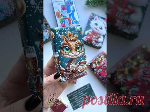 Изображение показывает упаковку с новогодней тематикой. На упаковке изображена нарисованная кошка в короне на фоне снежинок. Рядом видно ещё несколько упаковок с похожим дизайном, включая изображения других кошек.