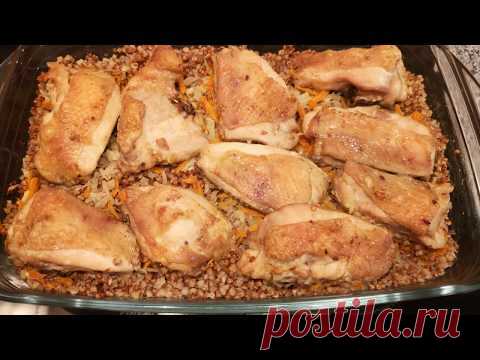 Гречка с куриными бедрами в духовке.Hähnchen mit Buchweizen im Ofen.Chicken with buckwheat.