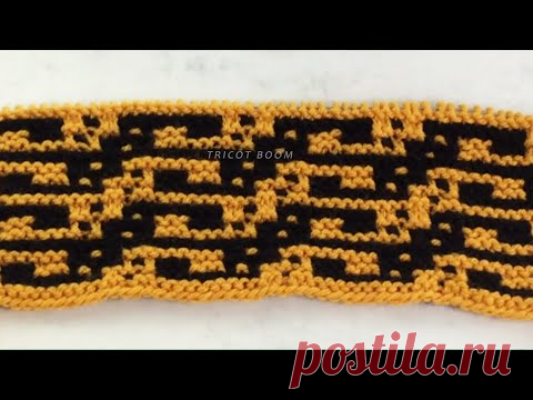 Мозаичный узор со сменой цвета фона. Вязание спицами.