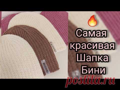 Изображение нескольких вязаных шапок разных цветов с надписью "Самая красивая Шапка Бини".