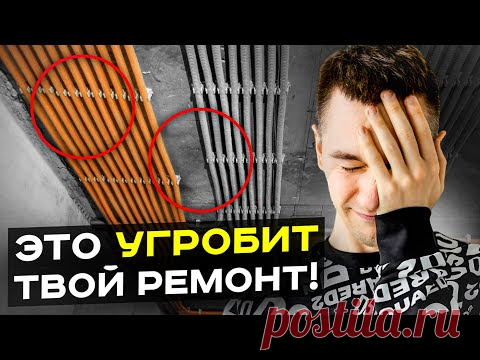 На изображении человек с закрытым лицом рукой и трубами на стене. Текст на изображении предупреждает о проблемах с ремонтом.