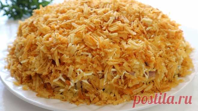 Это Круче чем Оливье!! Праздничный Салат "ПТАШКА" / Никто не останется равнодушным! Сытный праздничный салат с курицей и чипсами.Мясной салат очень вкусный.Продукты:куриное филе 1 шт.колбаса копчёная или ветчина 120 гсыр 150 гяйца 4 шт.огур...