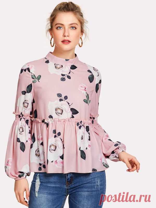 SHEIN Bishop Sleeve Frill Detail Floral Blouse
