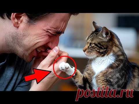 Изображение показывает человека и кошку. Кошка как бы держит человека за руку, а в центр кадра помещена стрелка и круг, указывающие на лапу кошки.