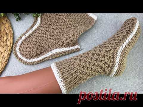 Вяжем ПРОСТЫЕ домашние следки-носки на ДВУХ СПИЦАХ. Мастер класс