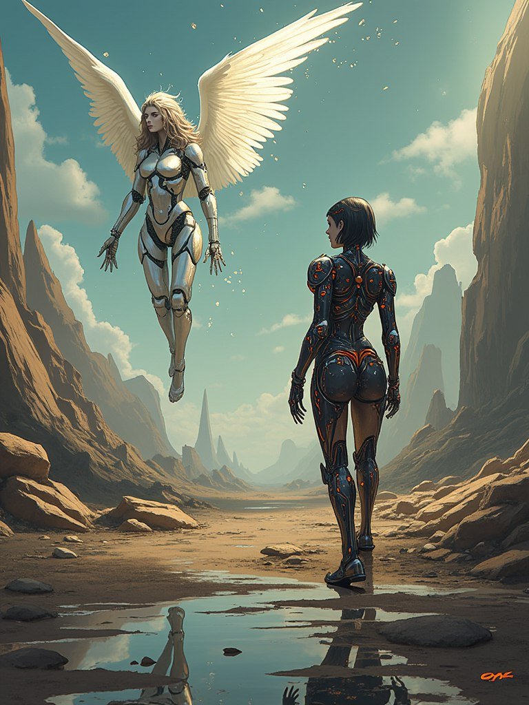 Встреча Киборга-Ведьмы с Ангелом в Пост-апокалипсисе. flux - Flux.1 примеры промтов - Форум ИИ о нейросетях - Yes Ai