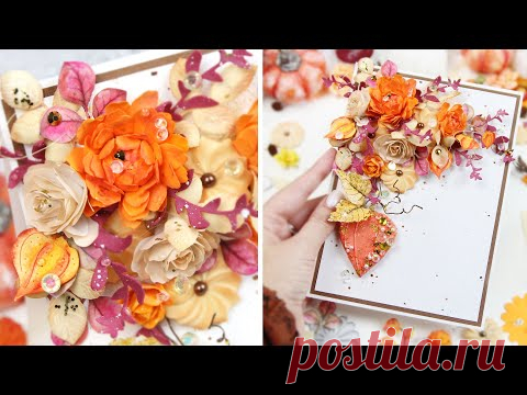 Соединила цветы, листики, фигурку физалиса 🍁Красивая ОСЕННЯЯ ОТКРЫТКА своими руками🍁DIY autumn craft
