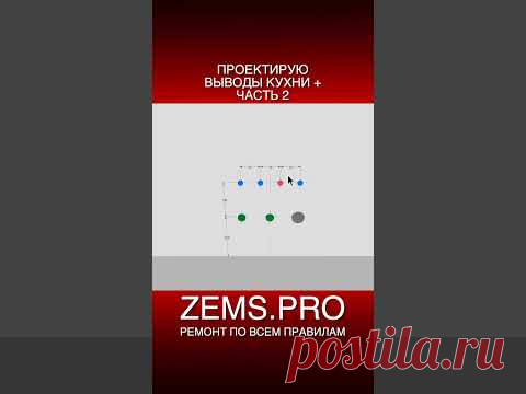 Изображение представляет собой обложку видеоролика с текстом: "Проектирую выводы кухни + часть 2". Внизу логотип "ZEMS.PRO" с текстом "Ремонт по всем правилам". На фоне присутствует схема с разноцветными точками.