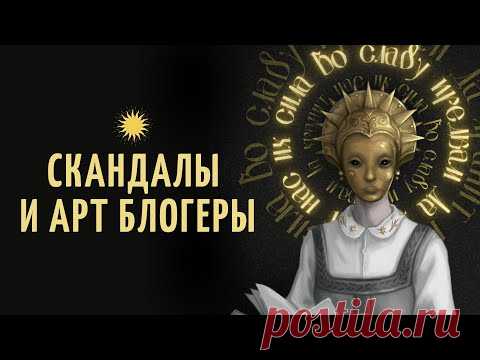 Изображение с текстом "Скандалы и арт блогеры" и стилизованным персонажем в художественном стиле.