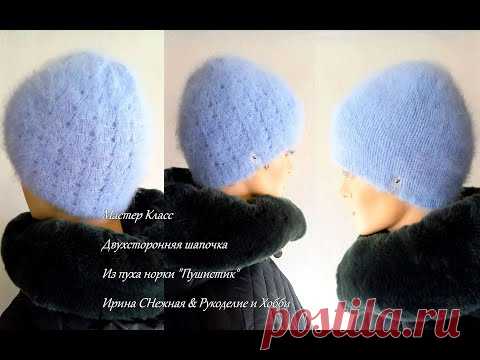 ВЯЖЕМ ПО МАСТЕР КЛАССУ ДВУХСТОРОНЮЮ ТЁПЛУЮ ШАПОЧКУ ИЗ ПУХА НОРКИ "ПУШИСТИК"