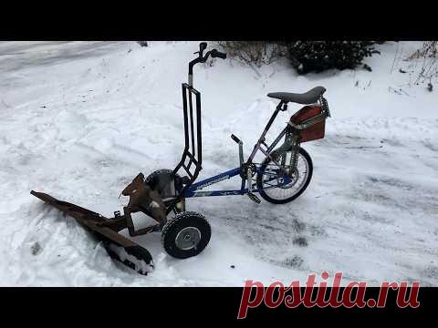 Снегоочиститель из старого велосипеда, тележки и металлической бочки своими руками