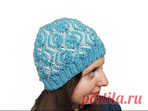 Женская шапка в технике бриошь "Заснеженные листья" // Brioche Stitch // Women's hats knitting