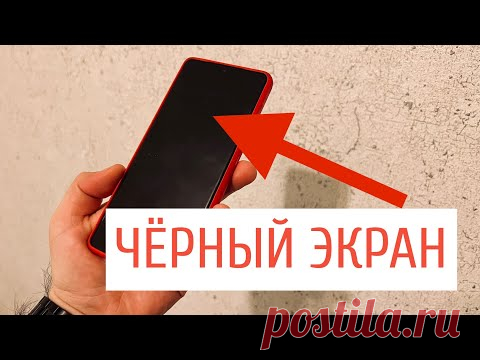 На изображении рука держит смартфон с чёрным экраном. На экране нет изображения, и на фото есть надпись "ЧЁРНЫЙ ЭКРАН" с указателем.
