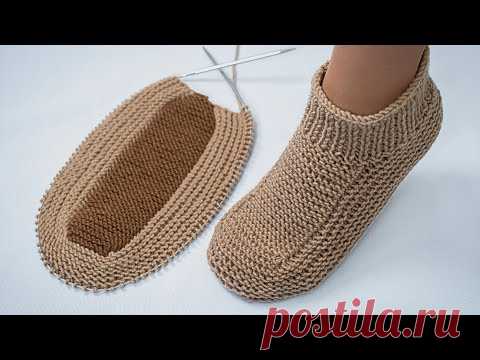 Как из четырех петель связать следки без шва на подошве быстро и просто!