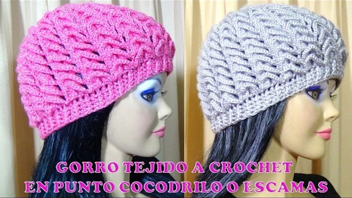 Gorro tejido a crochet para niñas, señoritas y señoras en Punto Cocodrilo o Escamas paso a paso