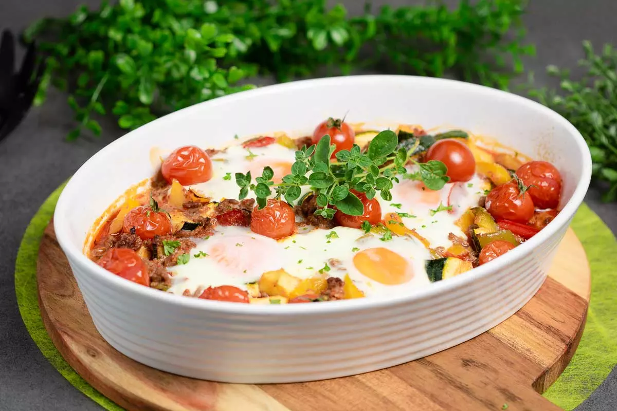 Deftige & leckere Low Carb Gemüse-Hackpfanne mit Spiegelei
