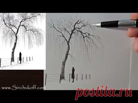 Как нарисовать зимний пейзаж Как нарисовать пейзаж