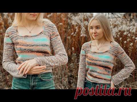 КОФТА с квадратным вырезом | Мастер-класс по вязанию спицами | Имитация втачного рукава