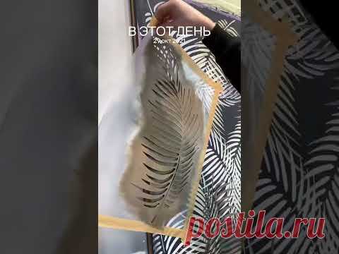 Изображение показывает руку, держащую лист бумаги с вырезом в форме листа папоротника на фоне ткани с похожим узором. В верхней части изображение содержит текст "В этот день."