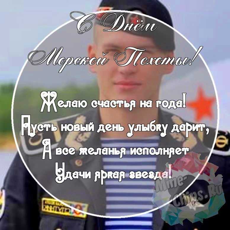 В этот праздничный день, Морпехов мы поздравляем, На море им равных нет, Границы размытые держат, Давайте же мы в ответ — Поздравим их — ласково, нежно!
