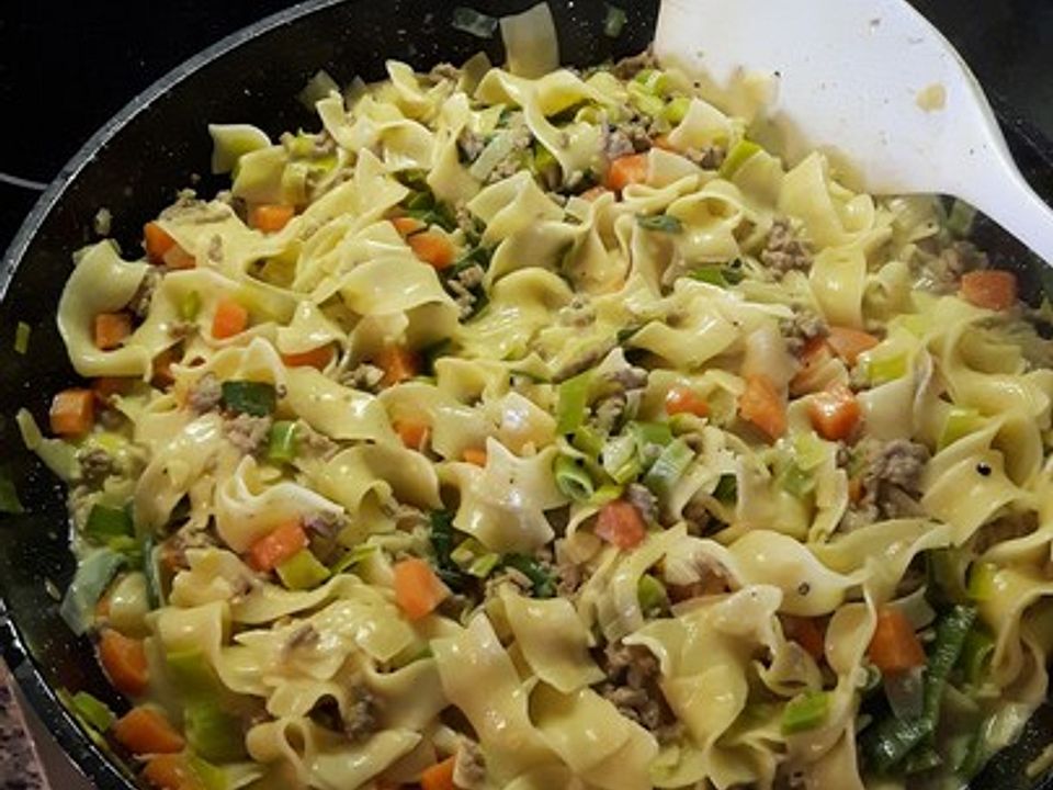 Hackfleisch-Porree-Nudel-Pfanne von inesunddirk04| Chefkoch Hackfleisch-Porree-Nudel-Pfanne - leckeres Rezept mit Möhren, Porree, Gehacktem und Nudeln. Über 71 Bewertungen und für vorzüglich befunden. Mit ► Portionsrechner ► Kochbuch ► Video-Tipps!