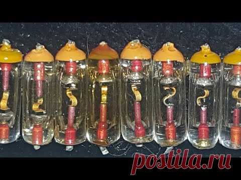 Изображение, вероятно, содержит набор вакуумных мини-ламп с красными и золотистыми элементами. Они расположены в ряд и имеют стеклянные корпуса.