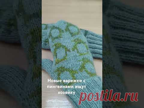 Варежки с жаккардом "Пингвины"/ Продам варежки ручной работы