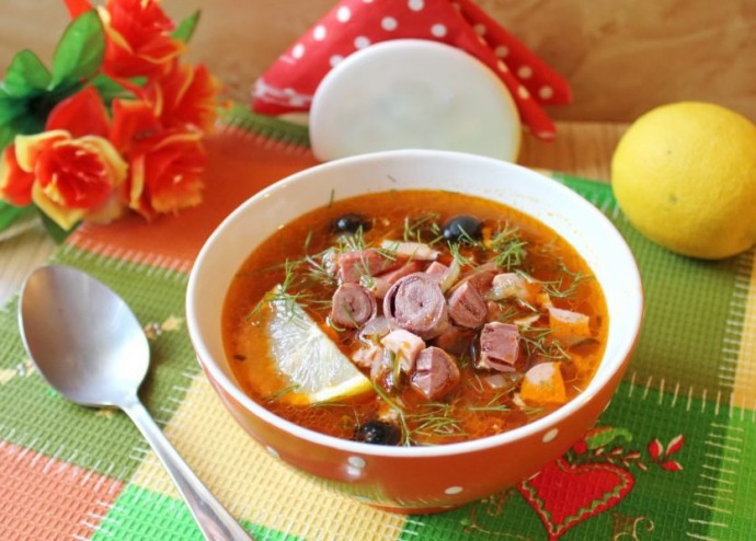 Солянка "по-домашнему" Ингредиенты:Куриные сердечки — 200 гКолбаса полукопченая — 150 г Салями — 200 г Сосиски — 2 шт. Окорочок куриный — 1 шт. Огурец соленый — 1–2 шт. Томатная паста — 1 ст. л. Подсолнечное масло — 30 мл Лук...