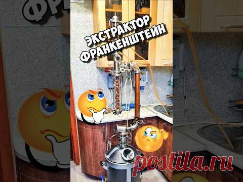 На изображении показан кухонный экстрактор с надписью "ЭКСТРАКТОР ФРАНКЕНШТЕЙН". Рядом находятся забавные смайлы в раздумьях.