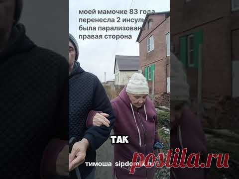 На изображении мужчина и пожилая женщина идут по улице. Женщина тепло одета, и мужчина поддерживает ее за руку. На изображении есть текст на русском языке.