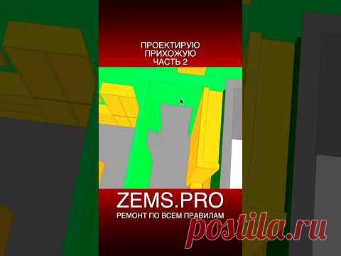Изображение с планом проекта ремонта прихожей с текстом "Проектирую прихожую, часть 2" и надписью "ZEMS.PRO, ремонт по всем правилам".