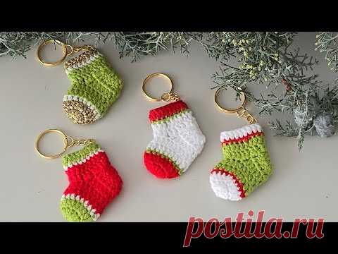 🧦🎁Удивите своих близких, подарив им на Рождество вязаный крючком мини-брелок в виде носка!