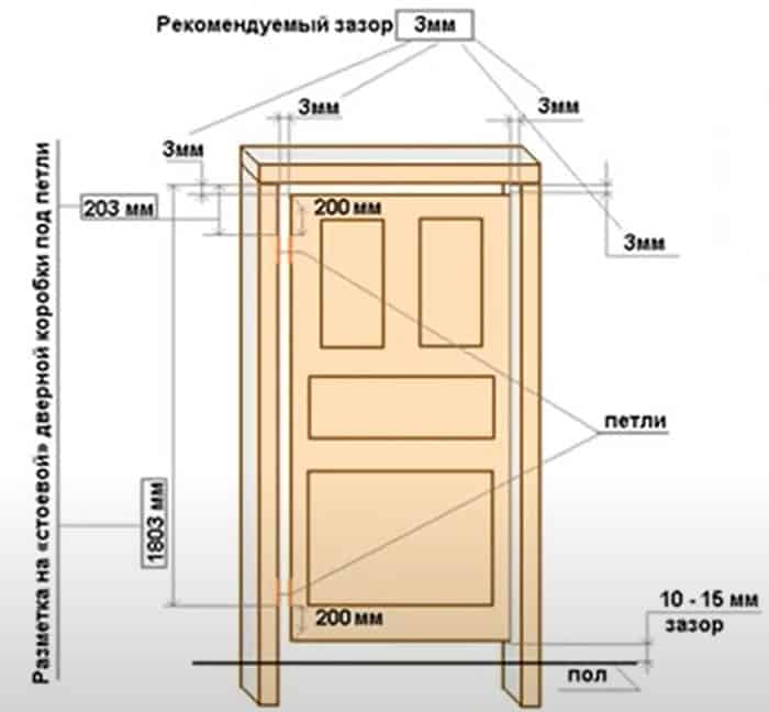 Изображение схемы дверной рамы с указанием размеров и зазоров.