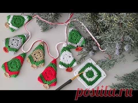 🎄Очень простой венок из сосны крючком с разноцветными квадратами на Рождество
