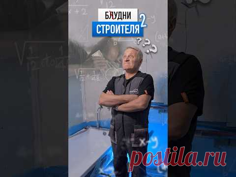 На изображении мужчина в рабочей одежде смотрит вверх, скрестив руки на груди. На фоне видны формулы и строительные чертежи. Текст на изображении: "Блудни строителя 2".