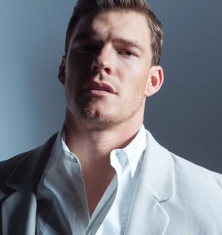 На изображении мужчина в светлой одежде позирует на портретной фотографии.