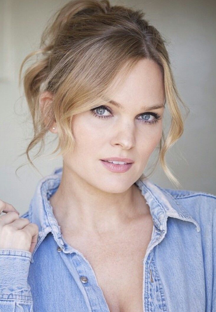 Изображение женщины с светлыми волосами, она одета в джинсовую рубашку.