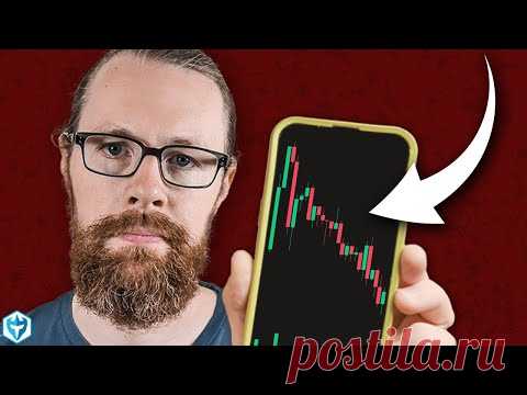 Человек держит телефон с графиком акций на экране.