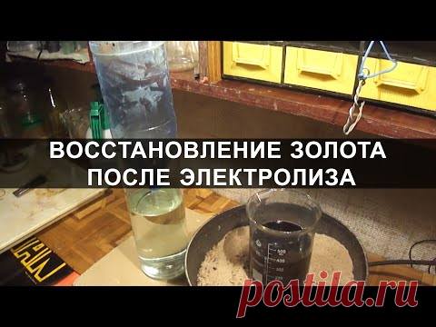 Изображение лабораторной установки для восстановления золота после электролиза. Видны различные емкости и посуда для проведения химических процессов.