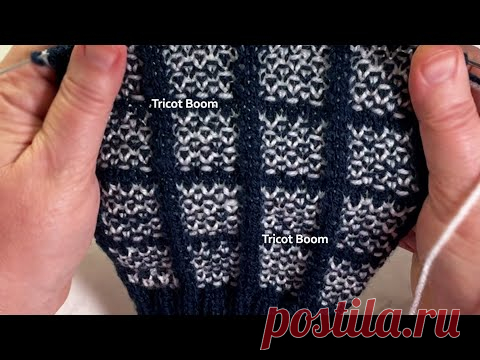 Клетка, легко и просто, без схемы и описания. Вязание спицами. Woven Block Stitch.