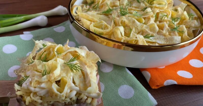 Салат Девчата с яичными блинчиками Салат Девчата с яичными блинчиками, готовится очень просто, получается очень вкусным и аппетитным.