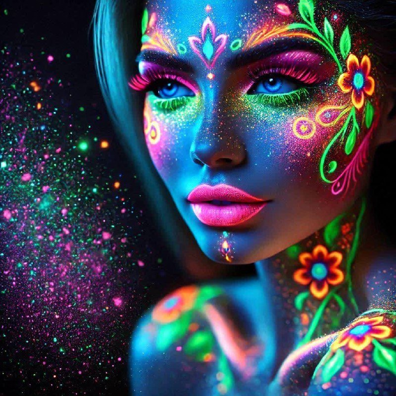 Галактическое Сияние: Неоновый Макияж и Татуировки. Генерация из нейросети Далли 3 - Dalle примеры промтов - Форум ИИ о нейросетях - Yes Ai