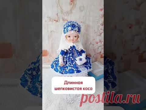 Кукла в традиционной русской одежде с длинной шелковистой косой.